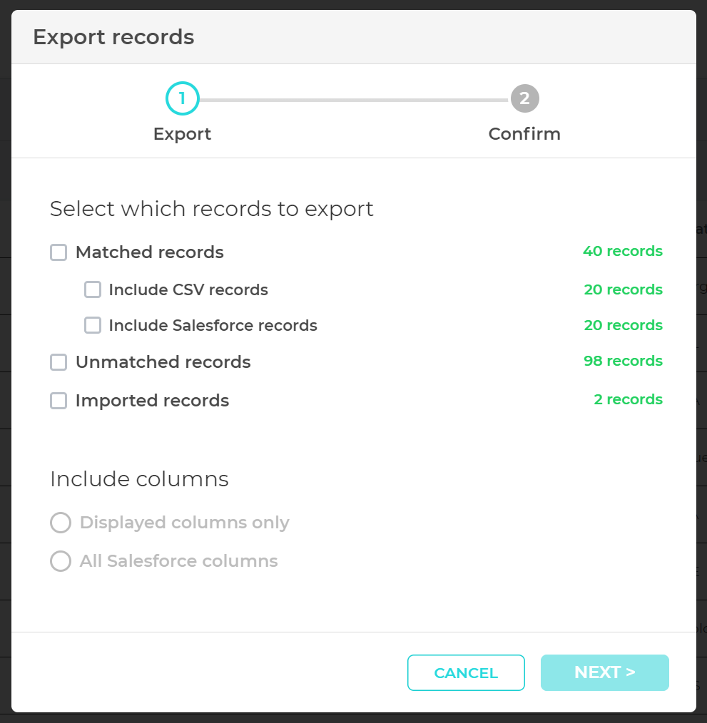 In both Trimmr and Importr you now have more flexibility which records and which fields to include in export by selecting types of records and displayed only or all Salesforce columns.