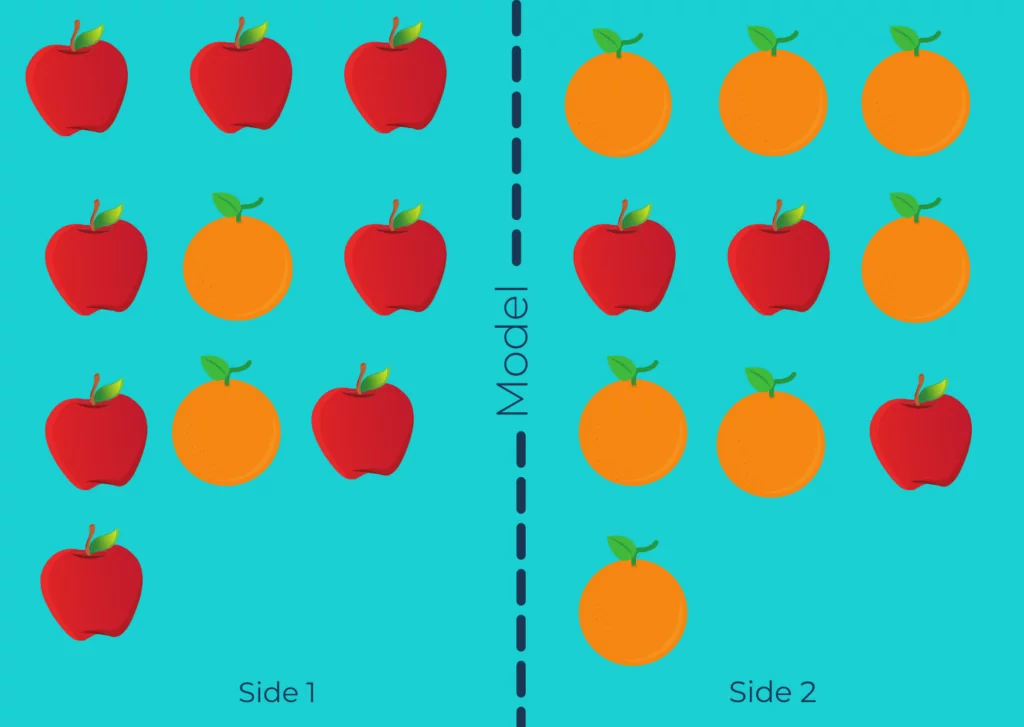 While this may sound complicated, it can be easily illustrated using an example. Let’s say we have two sets of classes represented by apples and oranges as shown below: