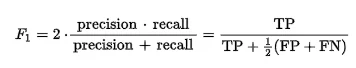 The F1 score takes into account both precision and recall and is based on a balance of the two. So, for example, if your model does a good job of predicting both apples and lemons, then you will have a high F1 score. How is the F1 score calculated? The formula for the F1 score is as follows: