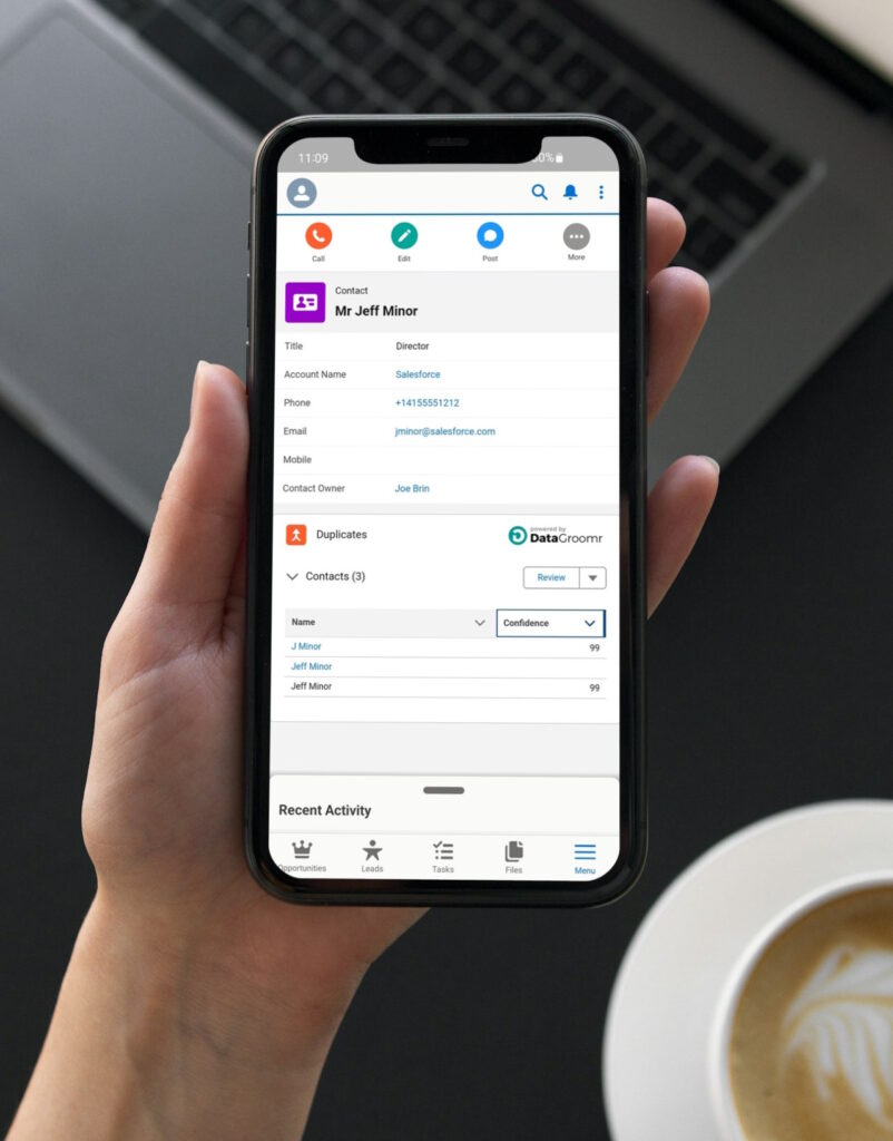 DataGroomr’s two optional Lightning Web Components, which surface duplicate and verification statuses in native Salesforce have now been certified as mobile friendly! This offers a larger range of users the ability to access DataGroomr through their mobile devices. Simply add the DataGroomr LWC to the corresponding Mobile/Tablet layouts to roll this capability out to your Salesforce users.