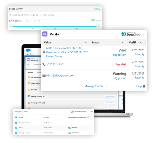 Verification works alongside AI-powered deduplication, duplicate prevention, and data standardization to maintain accurate, reliable Salesforce records.